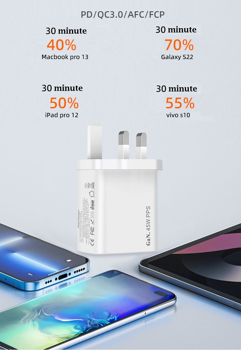قدرة شحن سريع 45 واط للأجهزة الحديثة.