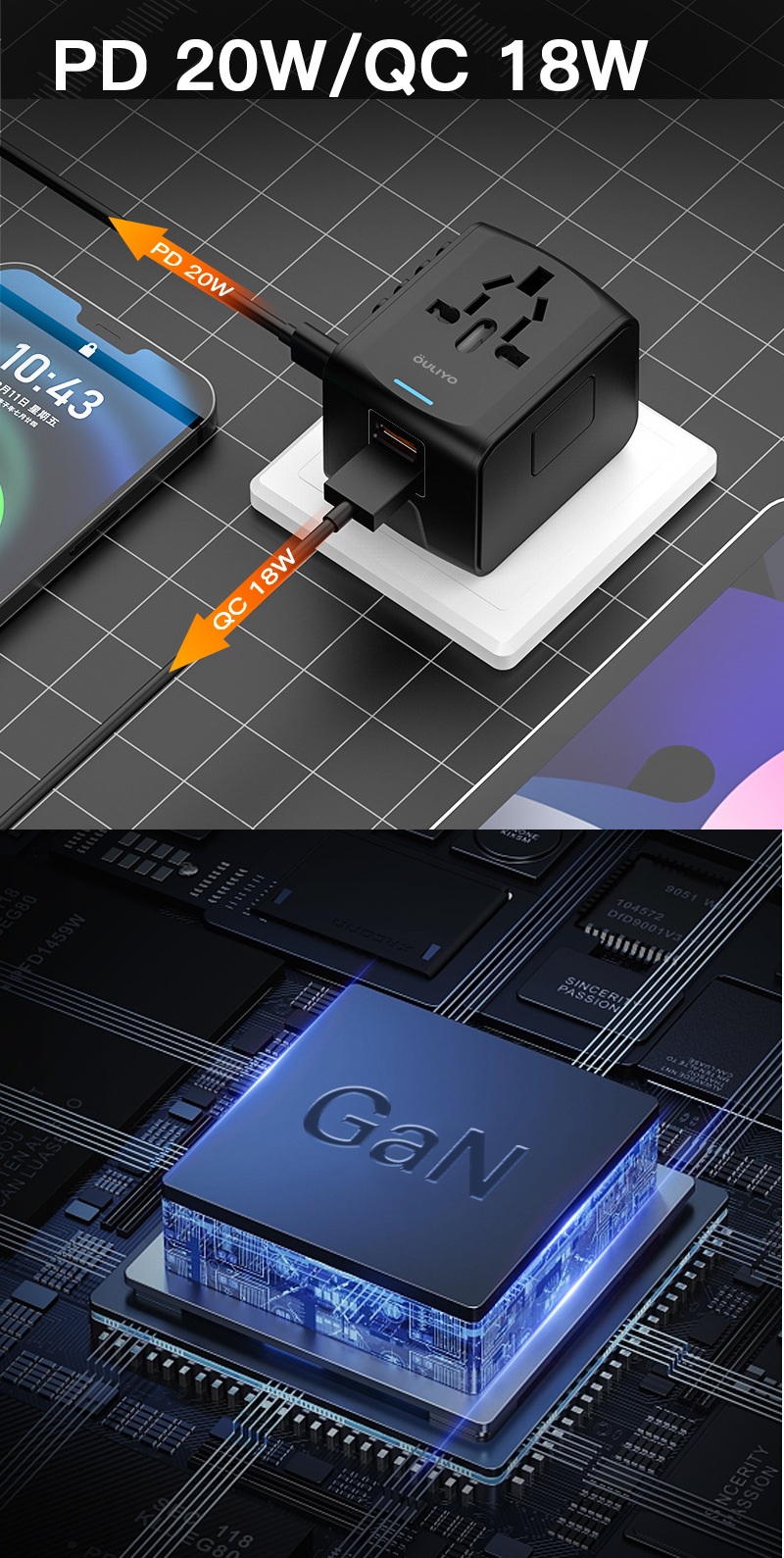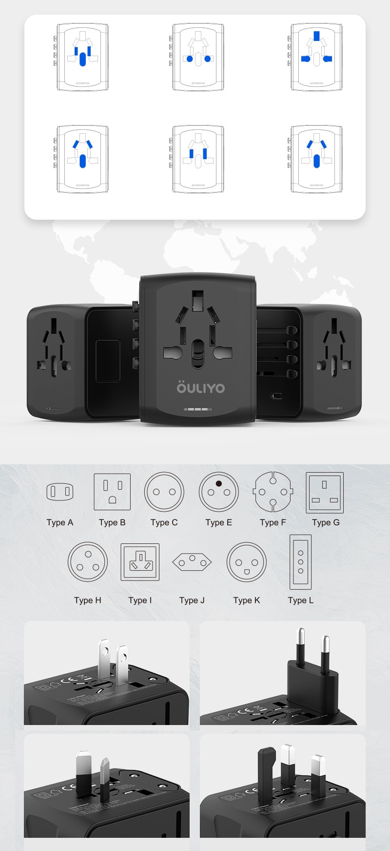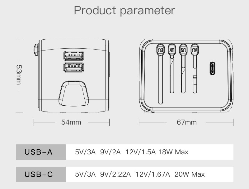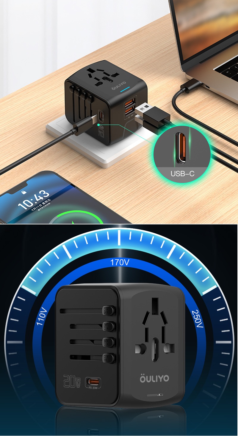 "احصل على فيش سفر بقدرة 20 واط مصمم ليمنحك شحنًا سريعًا وعمليًا بفضل منفذ Type-C مع منفذين USB لتغطية جميع احتياجاتك في وقت واحد. تم تصنيعه من مادة PC مقاومة للحريق لزيادة الأمان، مع تصميم خفيف ومدمج يسهل حمله في السفر أو الاستخدام اليومي. نوفر للتجار إمكانية الاستيراد بالجملة من الصين مع طباعة الشعار أو العلامة التجارية من خلال خدماتنا OEM وODM بجودة عالية وأسعار منافسة."