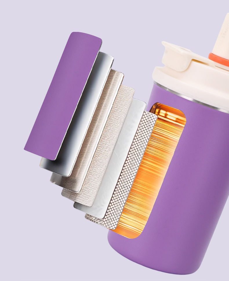 مزاز مدمج يجعلها عملية للاستخدام اليومي في العمل أو السفر أو الرياضة. توفر عزلًا حراريًا يحافظ على حرارة المشروبات أو برودتها لساعات طويلة. المنتج متوفر
